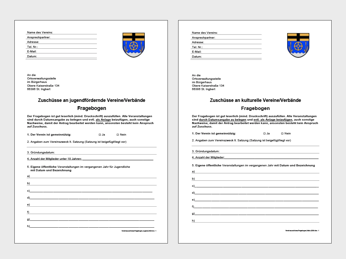 Die entsprechenden Antragsformulare sind per E-Mail über die Ortsverwaltungsstelle unter info@rohrbachsaar.de erhältlich oder können im Download-Bereich unserer Webseite heruntergeladen werden. Die ausgefüllten Anträge können anschließend unkompliziert per E-Mail oder auf dem Postweg an die Ortsverwaltungsstelle Rohrbach übermittelt werden.