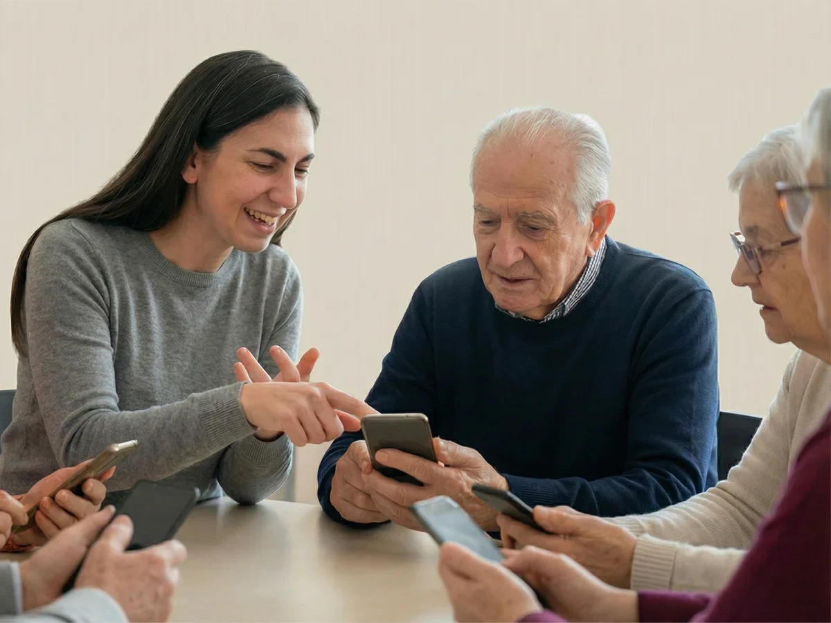 Der Fortgeschrittenen-Kurs unter der Leitung von Sarah Uzungüney richtet sich speziell an Seniorinnen und Senioren, die bereits über grundlegende Kenntnisse im Umgang mit dem Smartphone verfügen – etwa durch den Besuch des Anfängerkurses oder entsprechende Vorkenntnisse. Aufbauend auf dem bisherigen Wissen vertiefen die Teilnehmerinnen und Teilnehmer ihre Fähigkeiten im digitalen Alltag. Dazu gehört das Einrichten und Nutzen eines Kalenders sowie das Ordnen und Verwalten von Fotos. Die bereits bekannten Grundfunktionen von WhatsApp werden erweitert und weitere Möglichkeiten der App gemeinsam eingeübt.